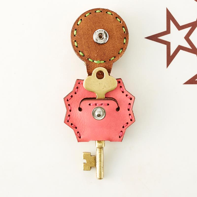 月と星がデザインされたキーキャップです。丸いフラップ部分とは対照的なギザギザした背面が特徴です。便利なナスカン付きなので、ベルトループやキーホルダーに付けてお使い頂けます。