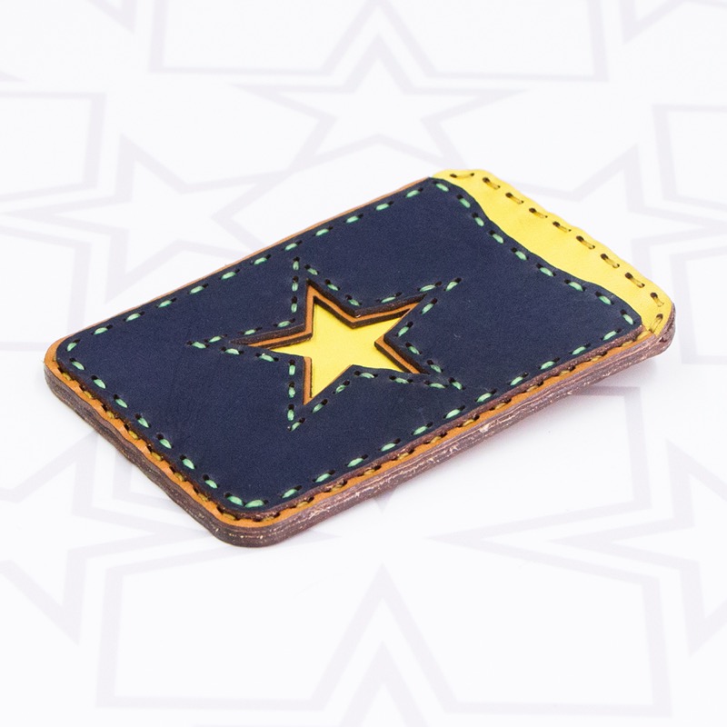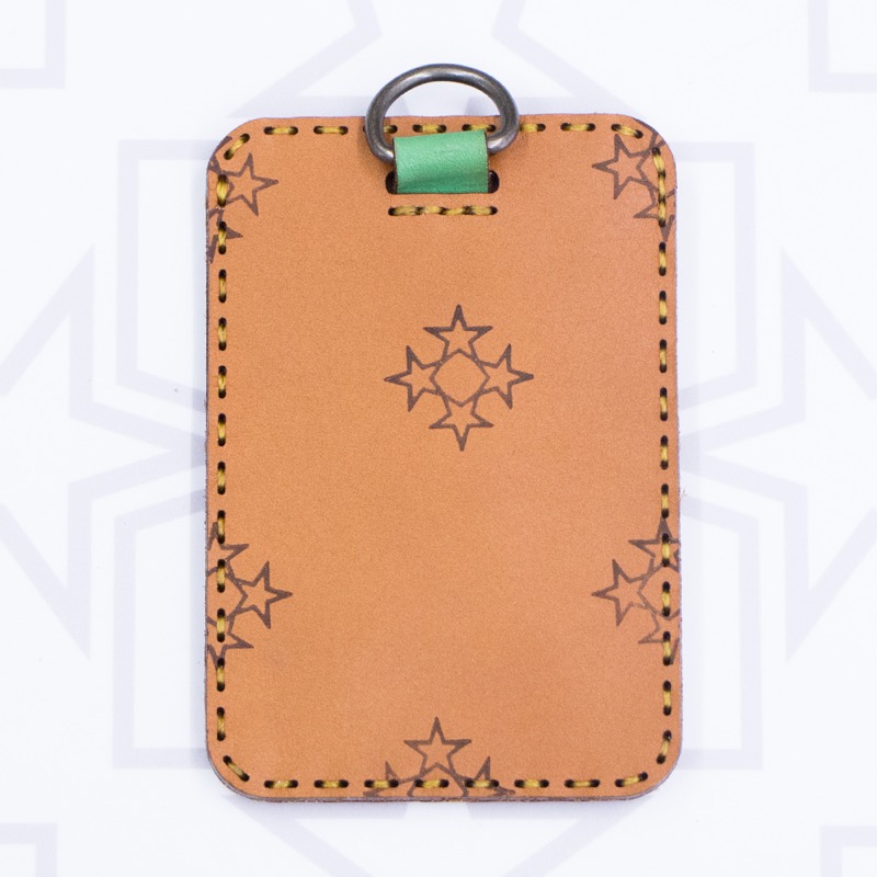 夜の探検を思わせるネイティブな配色の「NIGHT SAFARI COLLECTION」大きな五芒星のマークが印象的なパスケースです。 広大な大地のようなキャメル×ペールグリーン、夜空のようなネイビーにイエローの月と星が煌めきます。ポケットが二箇所付き、カードの出し入れもしやすくなっております。裏面に付いたリングにはチェーンやストラップを付けられるので、通勤・通学に便利なアイテムです。