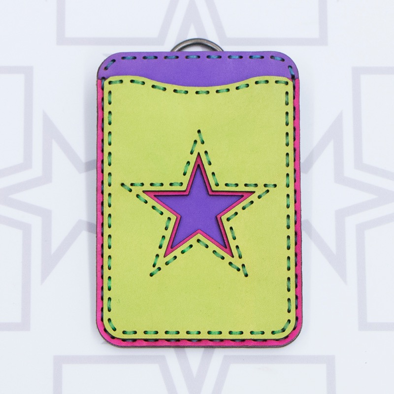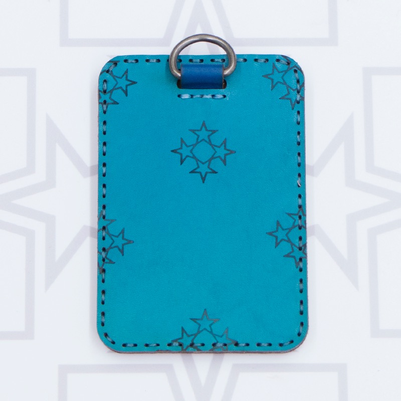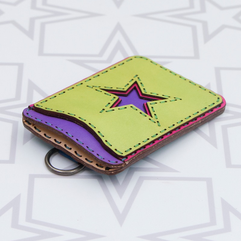 大きな五芒星のマークが印象的なパスケースです。 背面にはオジャガスターの焼き印を施しました。ポケットが二箇所付き、カードの出し入れもしやすくなっております。裏面に付いたリングにはチェーンやストラップを付けられるので、通勤・通学に便利なアイテムです。