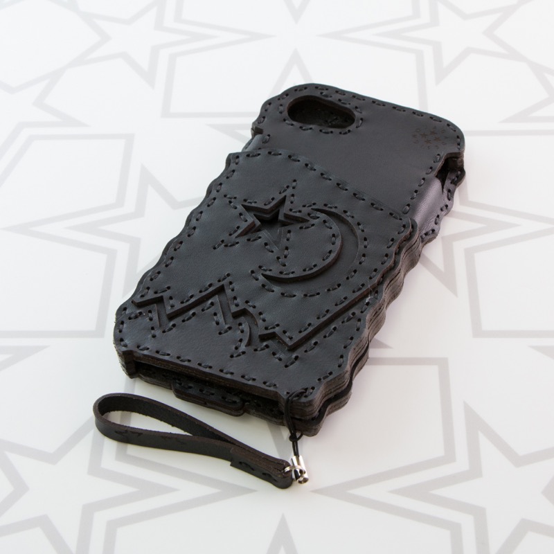 月星モチーフをデザインしたiPhone6/7/8ケースです。ポケット部分は空に浮かぶ月星と山をデザインし、風景画のような幻想的な仕上がりに。星の部分がくり抜きになっており、ポケットにカードを入れると一味違った表情を楽しめます。iPhone本体をしっかりと覆うことが出来、側面にもレザーを使用することで保護性を高め、ウェーブ状のカットを施すことで持ちやすさも重視。ホームボタン部分は押しやすいよう広めの作りになっております。※iPhone8でご使用の場合、ワイヤレス充電がご使用いただけない可能性がございます。予めご了承下さい。