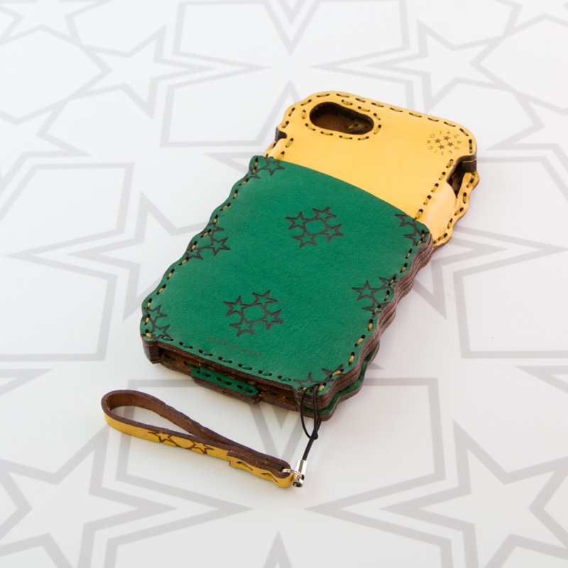 シンプルなオジャガスター柄のポケット付きiPhone6/7/8ケースです。シンプルなデザインにオジャガスターの焼印を施したポケットが付き、シンプルながらに利便性も高いデザインになりました。iPhone本体をしっかりと覆うことが出来、側面にもレザーを使用することで保護性もアップ。ウェーブ状のカットで持ちやすさも重視し、ホームボタン部分は押しやすいよう広めの作りになっております。