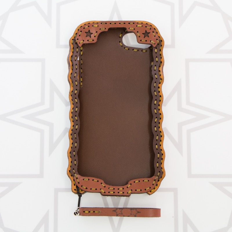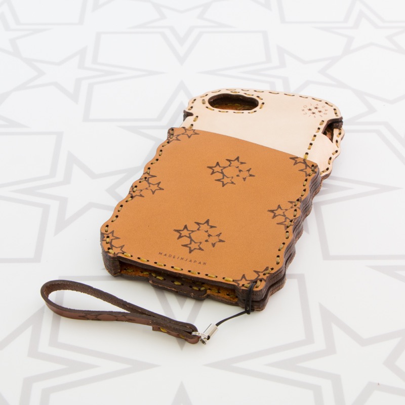 シンプルなオジャガスター柄のポケット付きiPhone6/7/8ケースです。シンプルなデザインにオジャガスターの焼印を施したポケットが付き、シンプルながらに利便性も高いデザインになりました。iPhone本体をしっかりと覆うことが出来、側面にもレザーを使用することで保護性もアップ。ウェーブ状のカットで持ちやすさも重視し、ホームボタン部分は押しやすいよう広めの作りになっております。