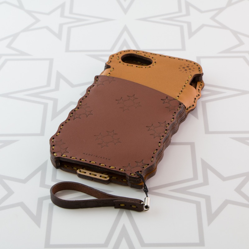 シンプルなオジャガスター柄のポケット付きiPhone6/7/8ケースです。シンプルなデザインにオジャガスターの焼印を施したポケットが付き、シンプルながらに利便性も高いデザインになりました。iPhone本体をしっかりと覆うことが出来、側面にもレザーを使用することで保護性もアップ。ウェーブ状のカットで持ちやすさも重視し、ホームボタン部分は押しやすいよう広めの作りになっております。