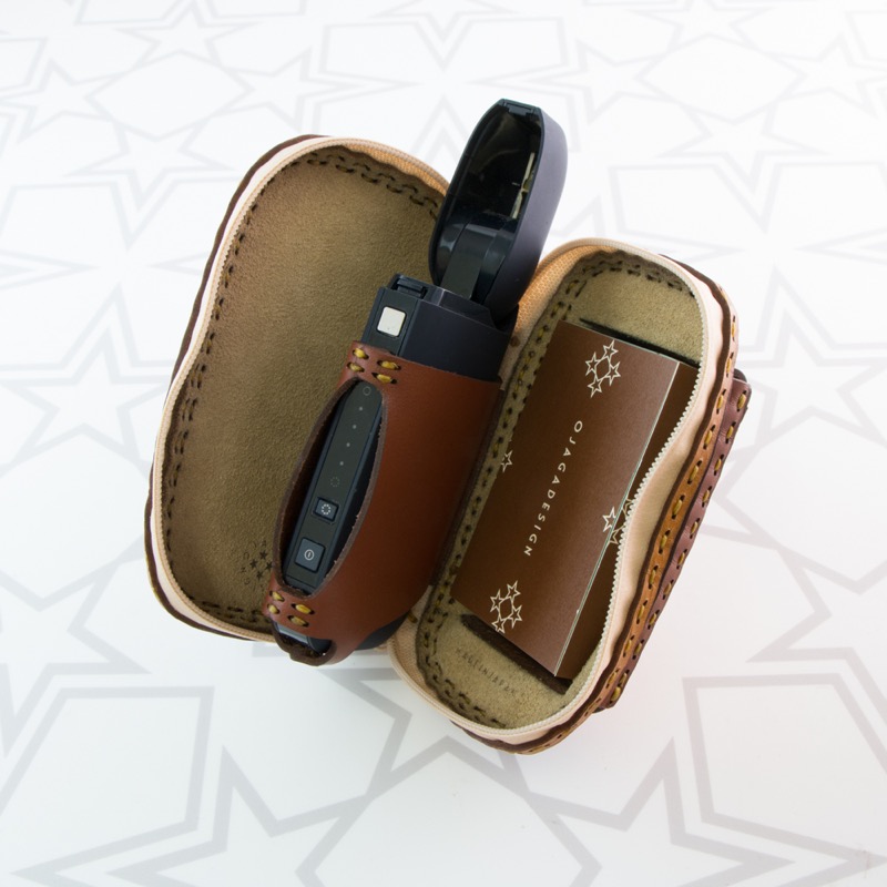 オジャガスターの焼印のみを施したシンプルなアイコスケースです。手染めならではのポップでカラフルなレザーが引き立つデザインで、経年変化をよりお楽しみいただけます。内側にはなめらかなスエードを使用ました。アイコスを装着したままチャージャーの開閉、充電、ボタンの操作、ホルダーの取り出しが出来、右側にはヒートスティックのボックスがそのまま入る便利な仕様。ダブルジップなので開け閉めもしやすくなっております。※写真5枚目は着用イメージです。 アイコス本体、ボックスは製品に含まれません。