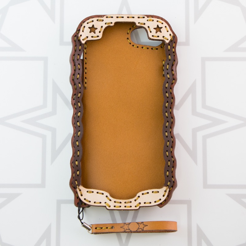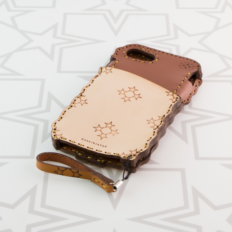 シンプルなオジャガスター柄のポケット付きiPhone6/7/8ケースです。シンプルなデザインにオジャガスターの焼印を施したポケットが付き、シンプルながらに利便性も高いデザインになりました。iPhone本体をしっかりと覆うことが出来、側面にもレザーを使用することで保護性もアップ。ウェーブ状のカットで持ちやすさも重視し、ホームボタン部分は押しやすいよう広めの作りになっております。