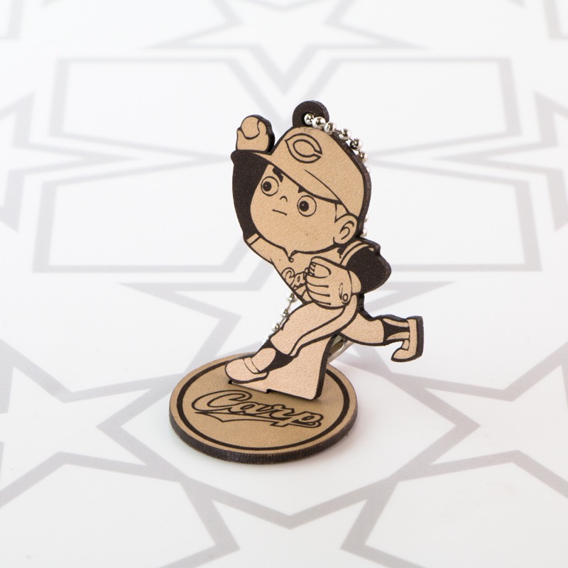 広島を本拠地とするセ・リーグ球団「広島東洋カープ」とのコラボアイテム。野球をしているカープ坊やがスタンドキーチェーンになりました。ナチュラルな風合いの厚みのあるレザーを使用し、キーチェーンとして鍵やバッグに等に着けるだけでなく、コレクションとして立てて飾ることも出来ます。豊かな表情と様々なポジションのポーズの中から、お気に入りの一点をお選び下さい。