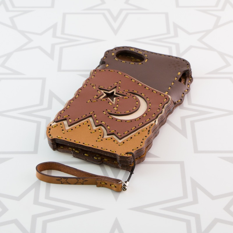 月星モチーフをデザインしたiPhone6/7/8ケースです。ポケット部分は空に浮かぶ月星と山をデザインし、風景画のような幻想的な仕上がりに。星の部分がくり抜きになっており、ポケットにカードを入れると一味違った表情を楽しめます。iPhone本体をしっかりと覆うことが出来、側面にもレザーを使用することで保護性を高め、ウェーブ状のカットを施すことで持ちやすさも重視。ホームボタン部分は押しやすいよう広めの作りになっております。