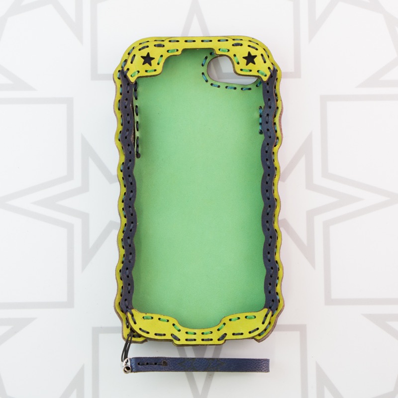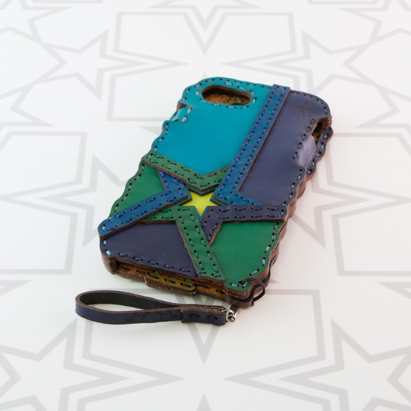 五芒星をデザインしたiPhone6/7/8ケースです。一風変わった五芒星を背面に大きく配置し、たくさんの革を重ねることでカラフルな配色が存分にお楽しみいただけるオジャガデザインらしさあふれるデザインになりました。iPhone本体をしっかりと覆うことが出来、側面にもレザーを使用することで保護性もアップ。ウェーブ状のカットで持ちやすさも重視し、ホームボタン部分は押しやすいよう広めの作りになっております。