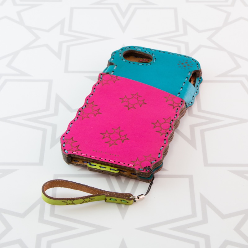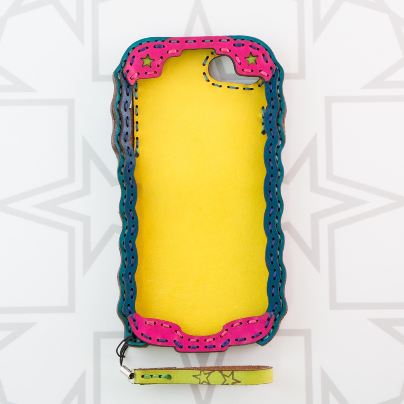 シンプルなオジャガスター柄のポケット付きiPhone6/7/8ケースです。シンプルなデザインにオジャガスターの焼印を施したポケットが付き、シンプルながらに利便性も高いデザインになりました。iPhone本体をしっかりと覆うことが出来、側面にもレザーを使用することで保護性もアップ。ウェーブ状のカットで持ちやすさも重視し、ホームボタン部分は押しやすいよう広めの作りになっております。