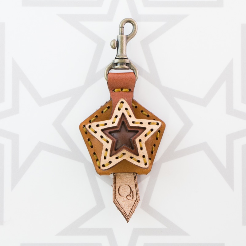 五芒星がデザインされたキーキャップです。ベースの五角形の上に3枚の革の五芒星を組み合わせた、立体感のある仕上がりです。お手持ちの鍵をおしゃれに彩るだけでなく鍵の目印にもなり、便利なナスカン付きなので、ベルトループ、キーホルダー、ファスナーなどに着けて紛失防止にも役立ちます。
