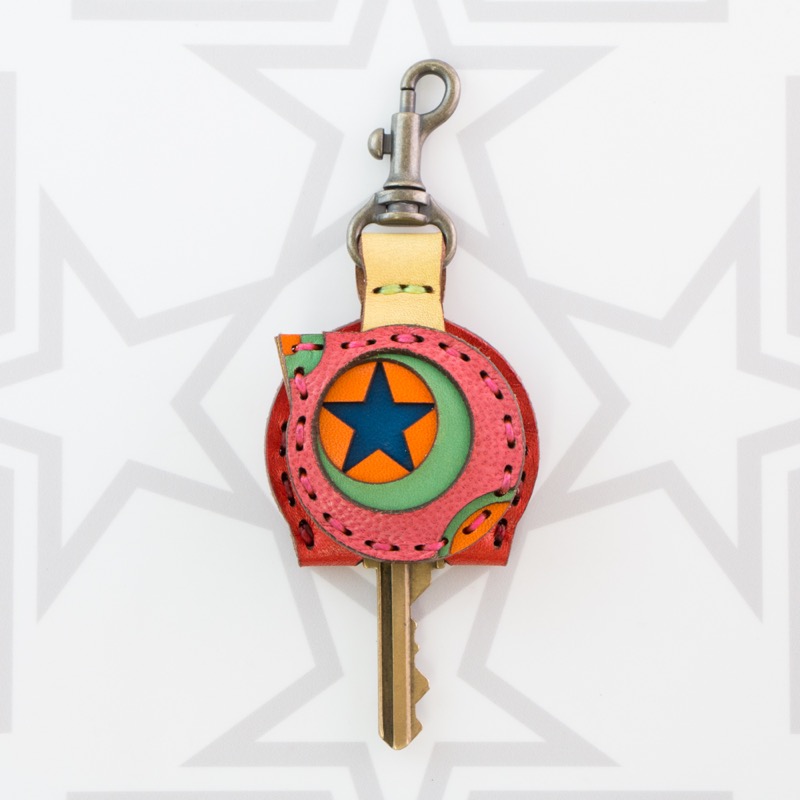 五芒星がデザインされたキーキャップです。左上の”とんがり”がポイントになった、特徴的な仕上がりです。お手持ちの鍵をおしゃれに彩るだけでなく鍵の目印にもなり、便利なナスカン付きなので、ベルトループ、キーホルダー、ファスナーなどに着けて紛失防止にも役立ちます。
