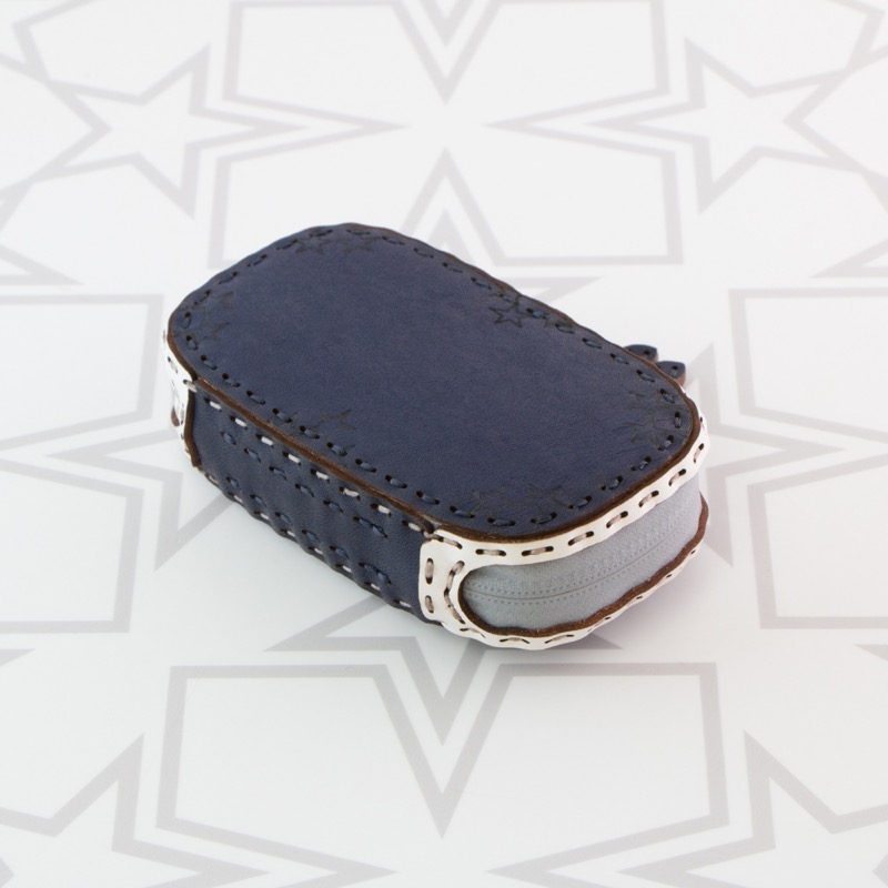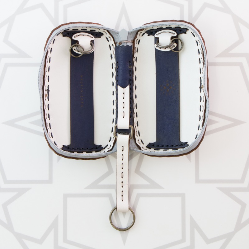 オジャガスターの焼き印が入ったシンプルなキーケースです。ダブルジップのラウンドファスナーと厚めのマチを付けることで中身を大切に保護するだけでなく、たくさんの鍵はもちろん、車用のスマートキーや厚みのあるノンタッチキーも収納が可能。よく使う鍵はレザーコード付きの二重リングに着けることで、鍵の開閉もスマートに。内側にはカードが収納できるようになっているので、駐車券やICカード、カードキーなどを入れられます。背面のDカンにはキーホルダーを着けたり、ベルトループと繋いだりと、カスタムしてお使い下さい。