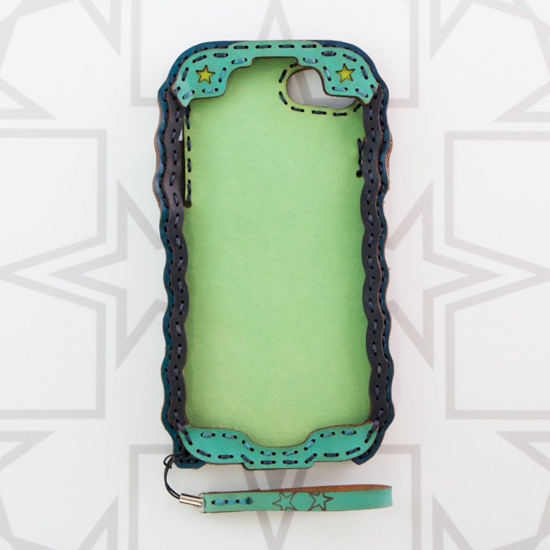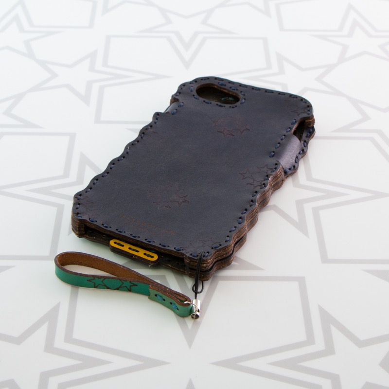 シンプルなオジャガスター柄のiPhone6/7/8ケースです。背面を一枚の革で仕上げ、ひとつひとつ手押しで押したオジャガスターの焼印のみのを施すことでシンプルさを追求しました。iPhone本体をしっかりと覆うことができるデザインで、側面にもレザーを使用することで保護性もアップ。ウェーブ状のカットで持ちやすさも重視し、ホームボタン部分は押しやすいよう広めの作りになっております。