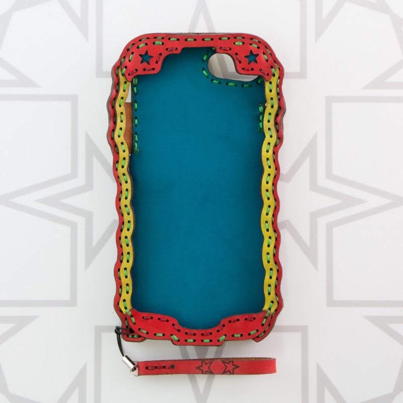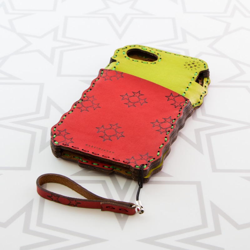 シンプルなオジャガスター柄のポケット付きiPhone6/7/8ケースです。シンプルなデザインにオジャガスターの焼印を施したポケットが付き、シンプルながらに利便性も高いデザインになりました。iPhone本体をしっかりと覆うことが出来、側面にもレザーを使用することで保護性もアップ。ウェーブ状のカットで持ちやすさも重視し、ホームボタン部分は押しやすいよう広めの作りになっております。