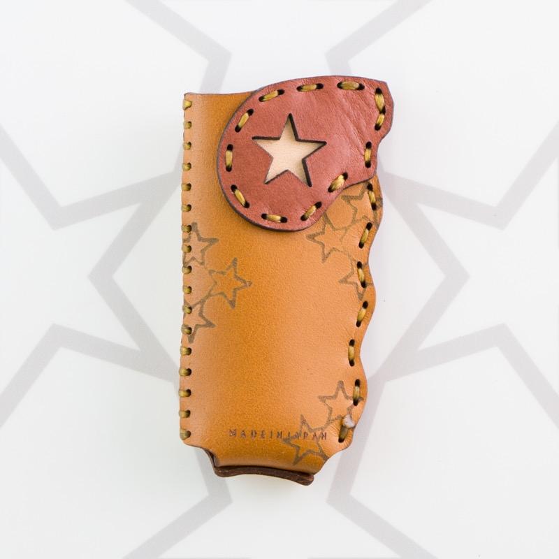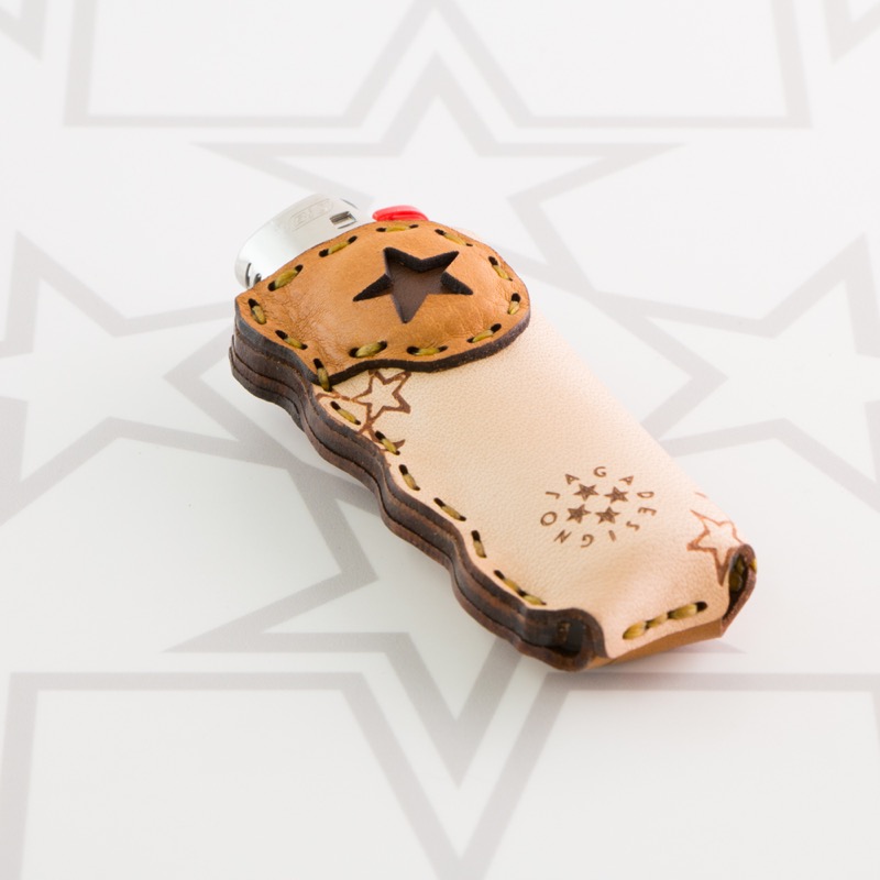 オジャガデザインのロゴマークである五芒星柄がベースとなり、握ったときの手にフィットするフォルムのライターケースです。両面で異なる2つの表情を楽しむことができるものとなっています。BICのライターがぴったり入るサイズです。