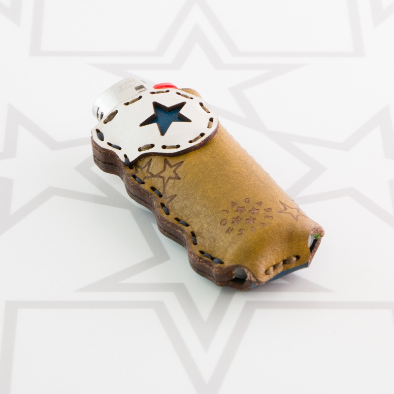 オジャガデザインのロゴマークである五芒星柄がベースとなり、握ったときの手にフィットするフォルムのライターケースです。両面で異なる2つの表情を楽しむことができるものとなっています。BICのライターがぴったり入るサイズです。