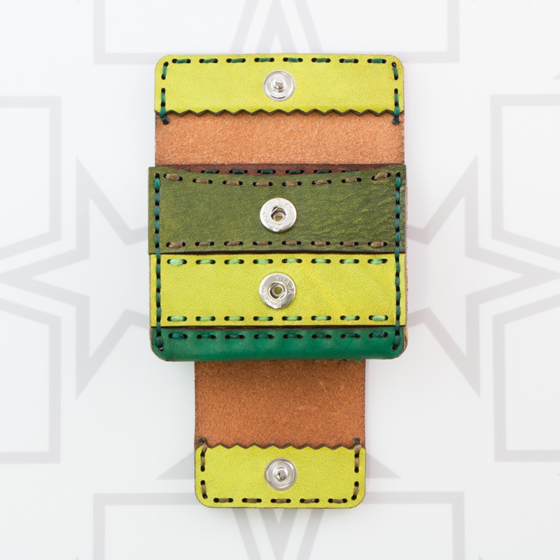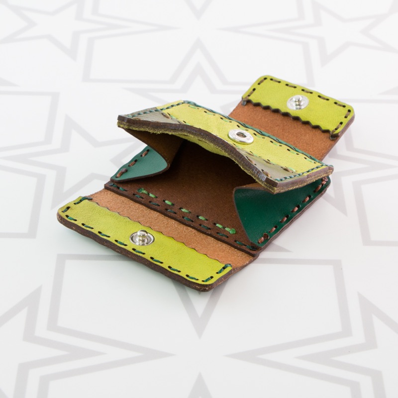ボーダーデザインのコインケース。手のひらに収まり、ポケットにすっぽりと入るコンパクトなサイズ感です。大きく開くマチが付いて、中身も見やすくなっております。ボタンタイプのベルトが付いており、バッグのショルダーベルトに付けたり、ベルトに付けてお使いいただけます。