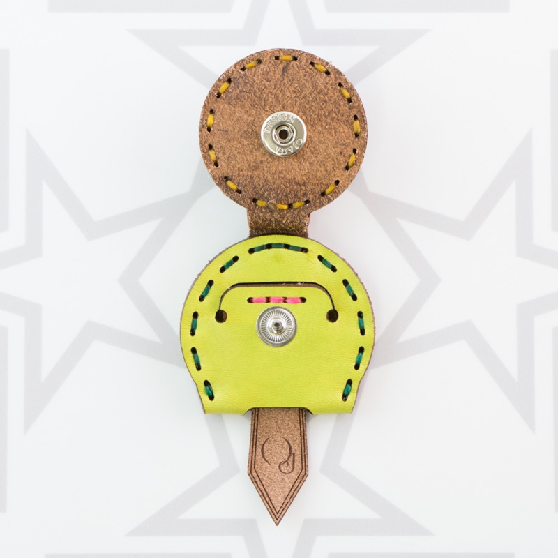 五芒星がデザインされたキーキャップです。丸いフォルムの真ん中に星を配置し、ステッチで縁取った印象的な仕上がりです。お手持ちの鍵をおしゃれに彩るだけでなく鍵の目印にもなり、便利なナスカン付きなので、ベルトループ、キーホルダー、ファスナーなどに着けて紛失防止にも役立ちます。