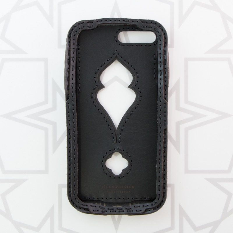 背面をモスク型でくり抜いたiPhone6Plus/7Plus/8Plus用ケースです。iPhoneを入れるとアップルマークとiPhoneの文字がくり抜き部分から見える遊び心のあるデザイン。iPhoneの側面をすべてレザーで覆った保護性の高いケースです。※写真4,5枚目はiPhone7/8用ケースにiPhone8を装着した場合のイメージ画像です。※お使いの充電器によってはiPhone8Plusのワイヤレス充電機能がお使いいただけない場合がございます。予めご了承下さい。