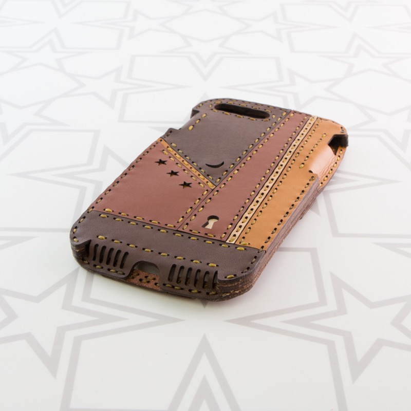 月星デザインのiPhone6Plus/7Plus/8Plusケースです。直線で表現した個性的なデザインに小さな月星と鍵穴を配置しiPhoneの側面をすべてレザーで覆った保護性の高いケースです。※お使いの充電器によってはiPhone8Plusのワイヤレス充電機能がお使いいただけない場合がございます。予めご了承下さい。