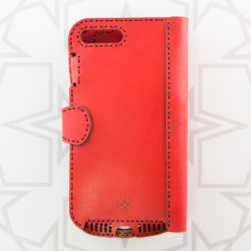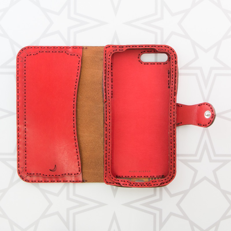 ダイアリータイプのiPhone6Plus/7Plus/8Plusケースです。緩やかな曲線でカットされた革を重ねオジャガスターを配置したシンプルなデザインで、ビジネスシーンにもお使いいただけます。開くと内側には中に仕切りついたポケットが備わっており、カードや名刺などが収納出来ます。iPhoneの側面をすべてレザーで覆った保護性の高いケースです。※お使いの充電器によってはiPhone8Plusのワイヤレス充電機能がお使いいただけない場合がございます。予めご了承下さい。