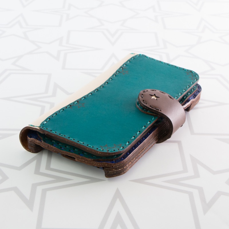 表にレザーの切り返しが入り、星でくり抜かれたベルトが付いた、シンプルで使いやすいデザインに仕上がりました。