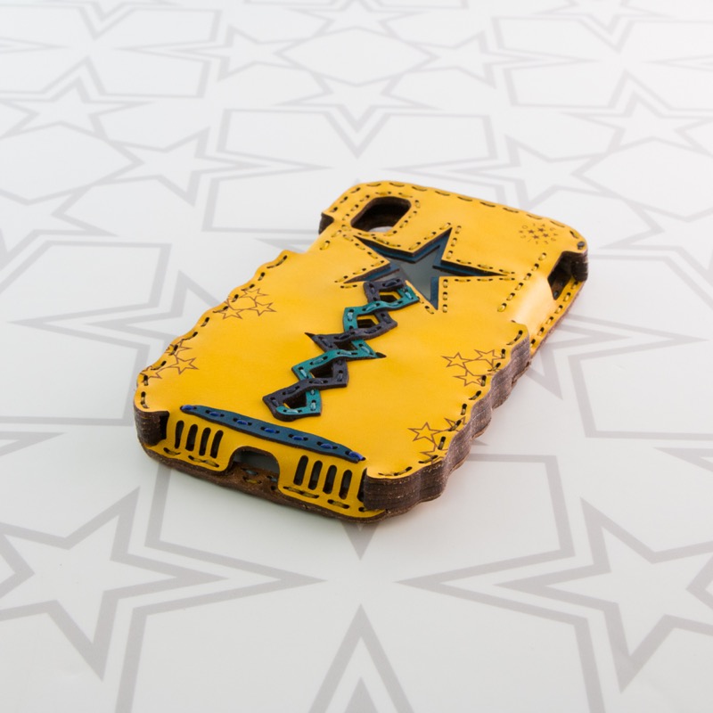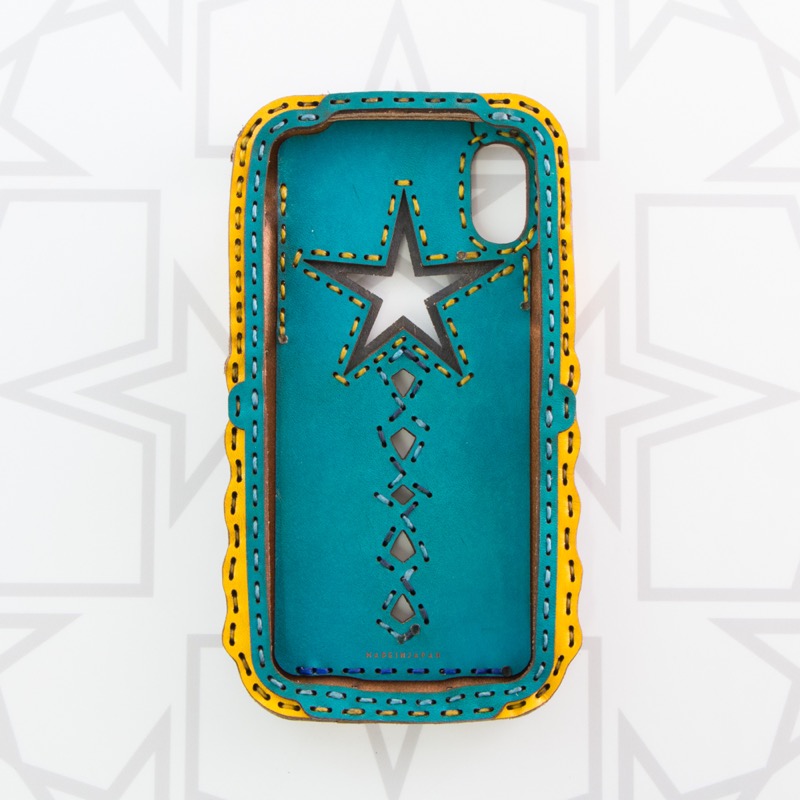 Appleマークが覗く大きな五芒星と個性的なカットが目を惹くデザインは、iPhone本体が透けるくり抜きを施したさりげない遊び心がポイント。