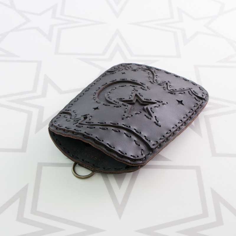 真ん中にオジャガスターを配置した新デザインのパスケースです。丸みのある個性的なフォルムがオジャガらしい仕上がりになりました。ポケットが2箇所付き、カードの取り出しがしやすいように外ポケットには楕円形のくり抜きを施しました。裏面にDカンが付いているので、通勤や通学で便利にお使いいただけます。