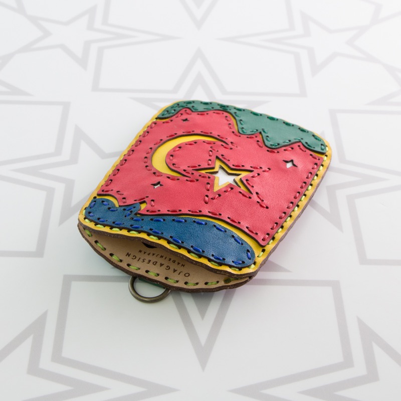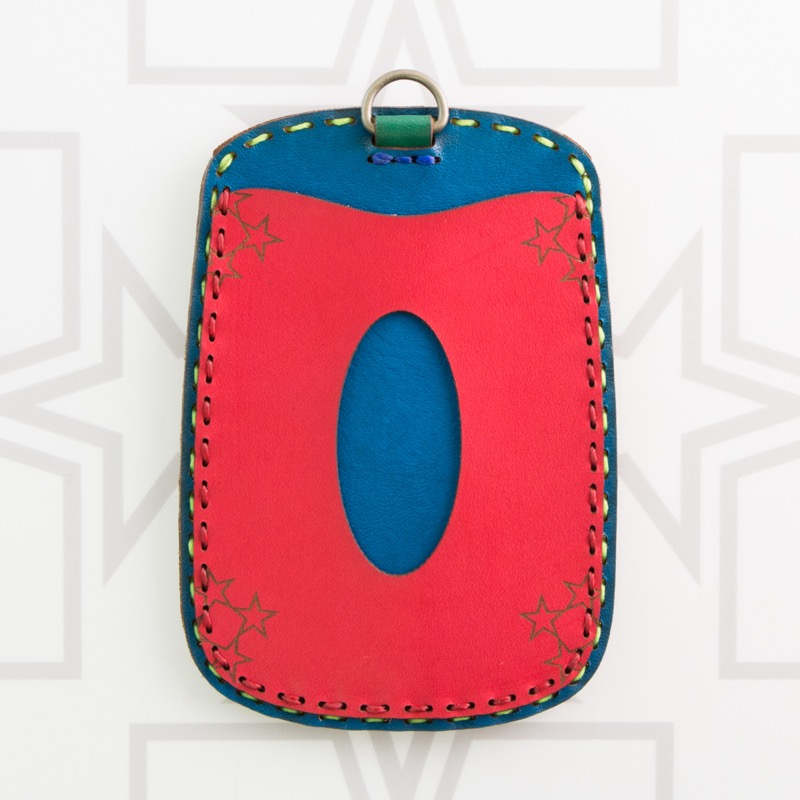 真ん中にオジャガスターを配置した新デザインのパスケースです。丸みのある個性的なフォルムがオジャガらしい仕上がりになりました。ポケットが2箇所付き、カードの取り出しがしやすいように外ポケットには楕円形のくり抜きを施しました。裏面にDカンが付いているので、通勤や通学で便利にお使いいただけます。