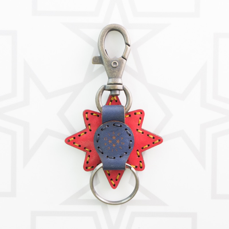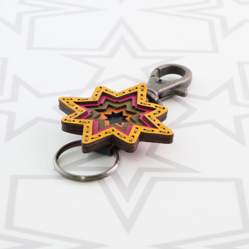新作のキーホルダーが登場。ベルトループやバッグなどに簡単に着脱が出来るナスカンと、キーキャップや鍵を着けることが出来る二重リングが着いた便利な仕様です。革を幾重にも重ねて八芒星を型取り、インパクトのあるデザインに仕上がりました。お気に入りのキーキャップと合わせてコーディネートをお楽しみ下さい。