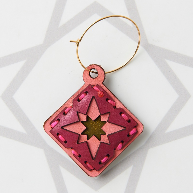 新デザインのフープピアスです。幾何学模様やフォークロア柄をイメージさせる独特なモチーフをアイコンにし、さりげないパンチングが目を惹くデザインです。華奢でシンプルな細い線のフープピアスを使用しているのでモチーフが目立ち、細いフープと個性的なモチーフが絶妙なバランスに仕上がりました。表裏それぞれ異なったカラーリングなので、リバーシブルでお楽しみ頂けます。片耳用なので、左右違ったデザインでのコーディネートもおすすめです。