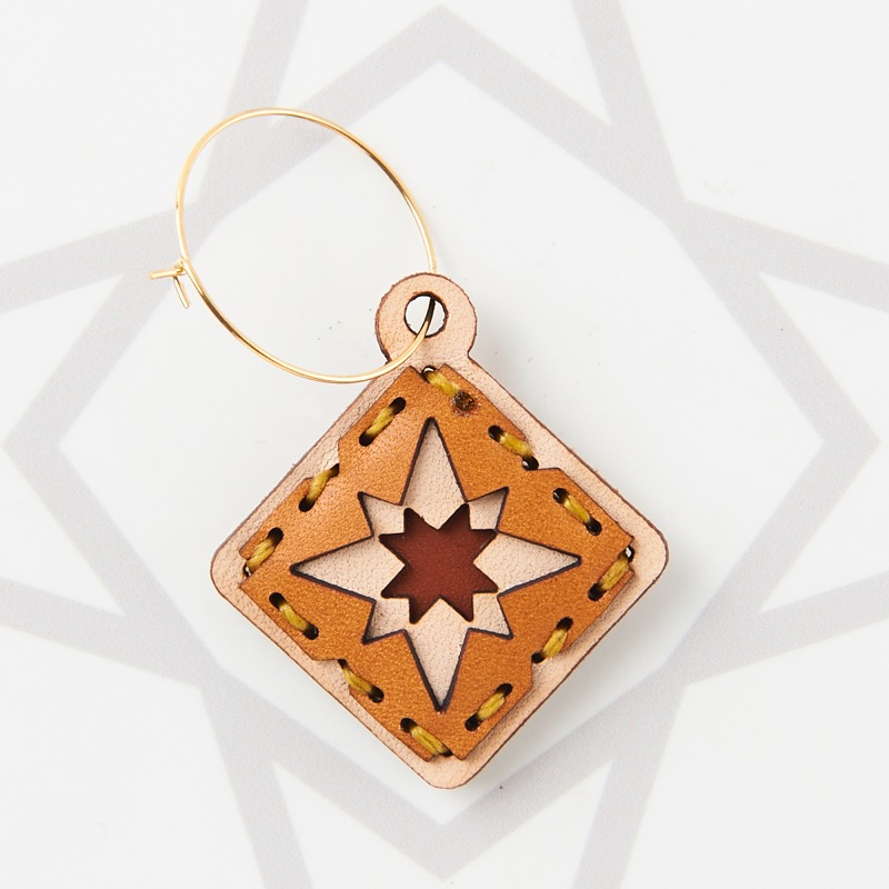 新デザインのフープピアスです。幾何学模様やフォークロア柄をイメージさせる独特なモチーフをアイコンにし、さりげないパンチングが目を惹くデザインです。華奢でシンプルな細い線のフープピアスを使用しているのでモチーフが目立ち、細いフープと個性的なモチーフが絶妙なバランスに仕上がりました。表裏それぞれ異なったカラーリングなので、リバーシブルでお楽しみ頂けます。片耳用なので、左右違ったデザインでのコーディネートもおすすめです。