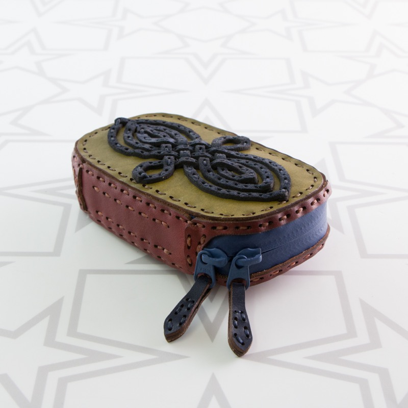 編み込み風のデザインを施したキーケースです。ダブルジップのラウンドファスナーと厚めのマチを付けることで中身を大切に保護するだけでなく、たくさんの鍵はもちろん、車用のスマートキーや厚みのあるノンタッチキーも収納が可能。よく使う鍵はレザーコード付きの二重リングに着けることで、鍵の開閉もスマートに。内側にはカードが収納できるようになっているので、駐車券やICカード、カードキーなどを入れられます。背面のDカンにはキーホルダーを着けたり、ベルトループと繋いだりと、カスタムしてお使い下さい。