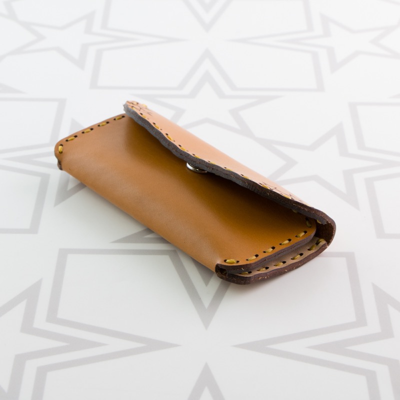 シンプルなデザインを施したキーケースです。レザーの色をお楽しみいただけるよう、シンプルに焼印のみを施し、ポケットにも入るすっきりとしたフォルムに仕上がりました。中には二重リングが3つ付いており、複数の鍵が着けられます。