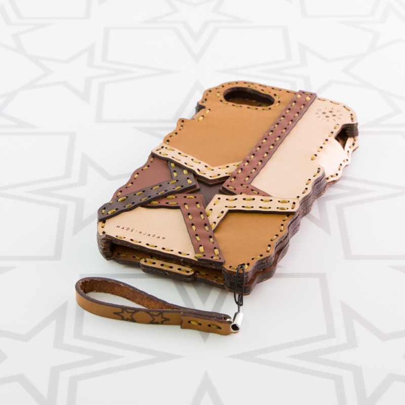 五芒星をデザインしたiPhone6/7/8ケースです。一風変わった五芒星を背面に大きく配置し、たくさんの革を重ねることでカラフルな配色が存分にお楽しみいただけるオジャガデザインらしさあふれるデザインになりました。iPhone本体をしっかりと覆うことが出来、側面にもレザーを使用することで保護性もアップ。ウェーブ状のカットで持ちやすさも重視し、ホームボタン部分は押しやすいよう広めの作りになっております。