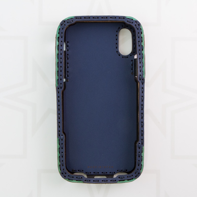 シンプルなデザインのiPhone X / XSケースです。背面を一枚の革で仕上げ、オジャガスターを配置したシンプルなデザインです。サイドのマチ部分にもさりげなくデザインが入りました。マチまでレザーで仕上げることで保護性が高くなるだけでなく、長く使うことで手にしっくりと馴染みます。※お使いの充電器によってはワイヤレス充電機能がお使いいただけない場合がございます。予めご了承下さい。