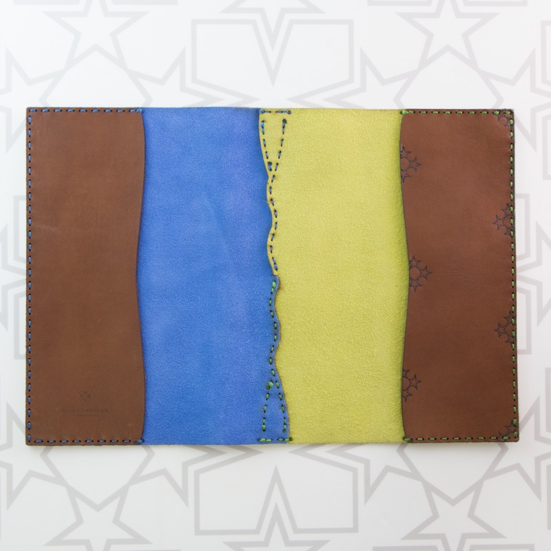 なめらかで手触りの良いスエードを使用したブックカバーです。背表紙の部分で波型に切り返しが入ったツートンカラーで手帳や本を彩ります。小さなふたつの星がワンポイントになったシンプルで使いやすいデザインです。B6判以外にも、A6判の文庫本サイズ、新書判サイズ、A5判、B5判、全5種類の豊富なサイズをご用意しております。※画像3枚目は装着イメージです。