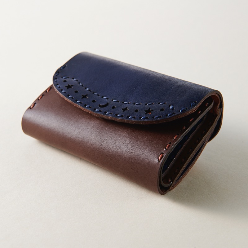 大きく開く二ヶ所のポケットに月と星がデザインされた可愛いデザインが特徴のミニウォレット。
