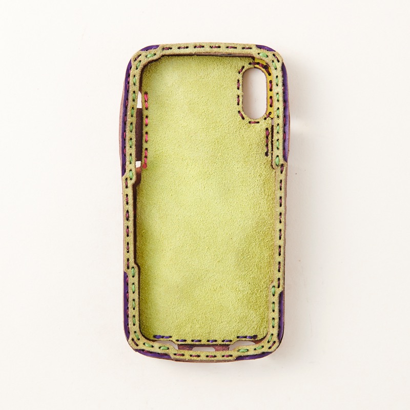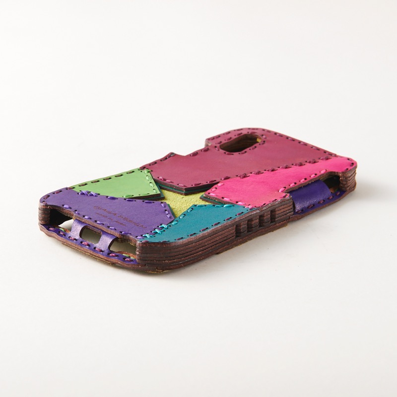 大きく五芒星を配置したデザインのケースは切り返しでたくさんの色を使い、クロスステッチを施しました。