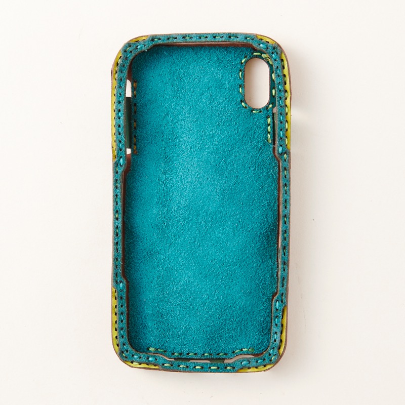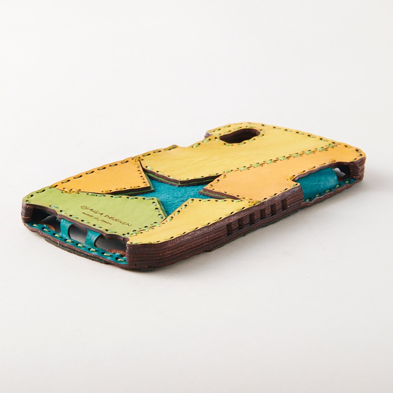 大きく五芒星を配置したデザインのケースは切り返しでたくさんの色を使い、クロスステッチを施しました。
