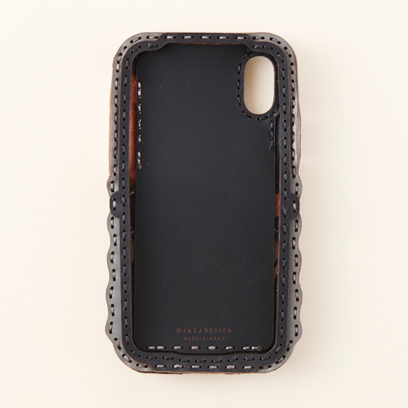 iPhone本体をしっかりと覆うことが出来、側面にもレザーを使用することで保護性を高め、ウェーブ状のカットを施すことで持ちやすさも重視。