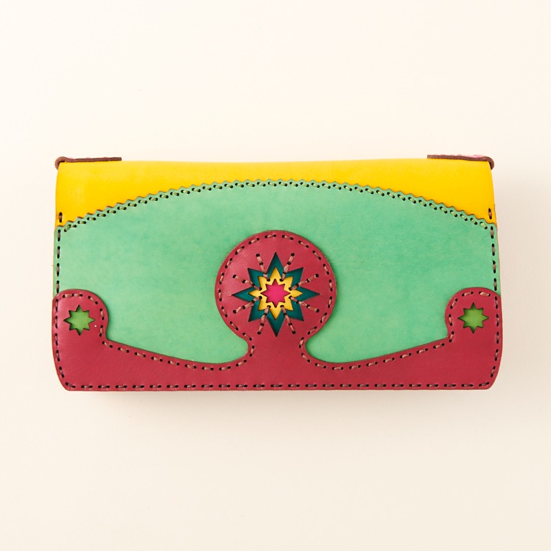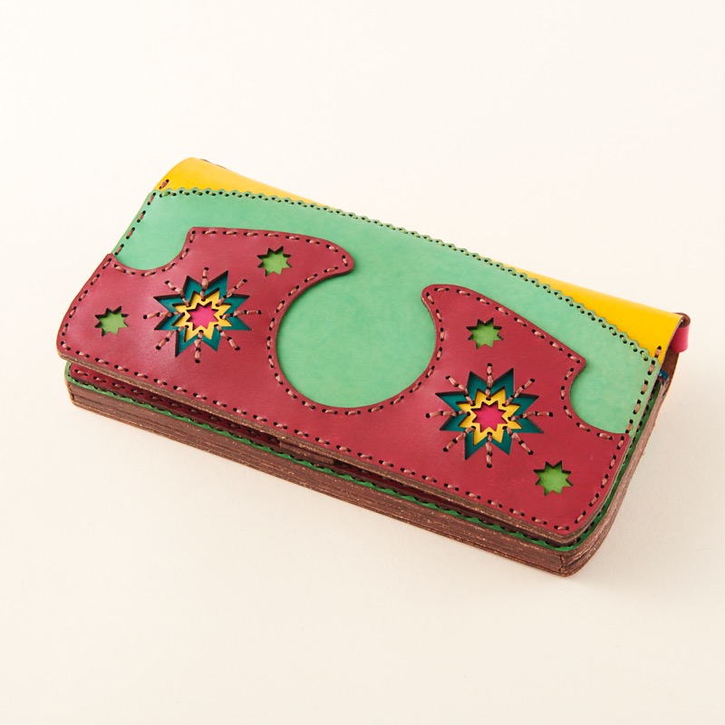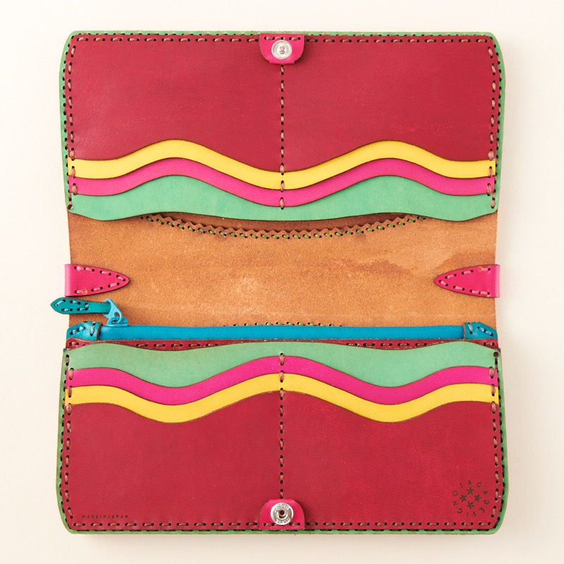 柔らかなカーブを描いたディティールと、繊細なステッチワークが秀逸な八芒星のロングウォレットです。ファスナータイプのコインケースと豊富なカードスペースで使いやすい仕上がりとなりました。カードスペースはカーブを描いており、内側のカラーとディティールにも拘りデザインしています。※商品のDカンはオプションで取り付け可能です。