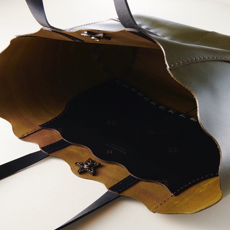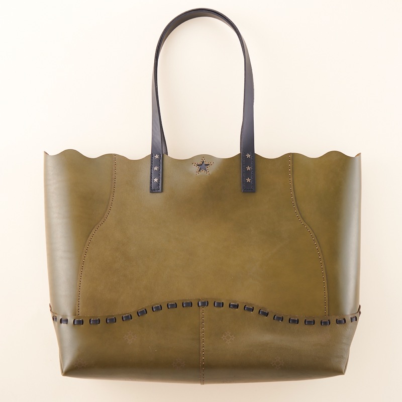 五芒星のマークがアクセントになったシンプルなレザートートです。