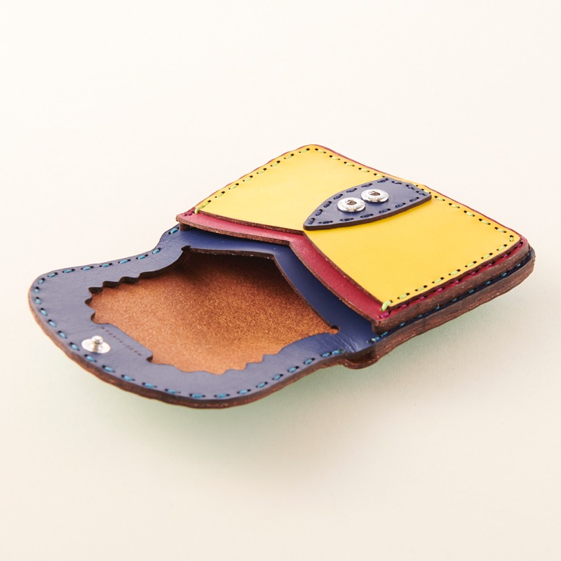 「オジャガデザイン」のロゴマークである、五芒星の焼印が入ったコイン&カードケースです。2つ付いたボタンフックは用途に合わせてサイズを調節できます。コンパクトで持ち運びしやすいアイテムとなっています。