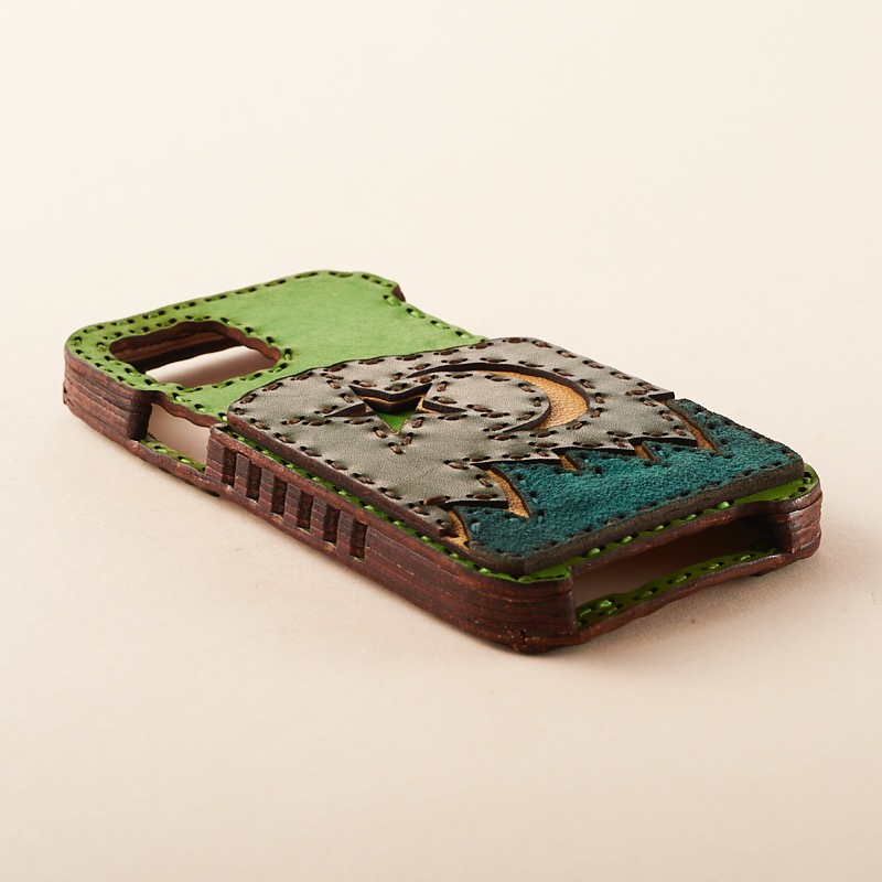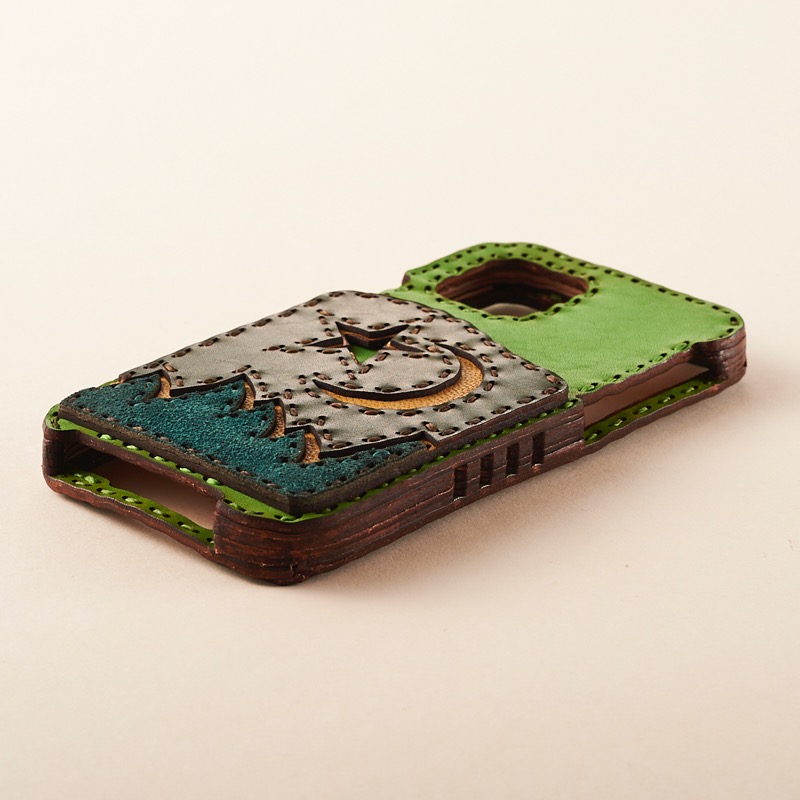 定番の月星デザインのiPhone11/11Pro/11ProMax用ケースです。ポケット部分は空に浮かぶ月星と山をデザインし、風景画のような幻想的な仕上がりに。星の部分がくり抜きになっており、ポケットにカードを入れると一味違った表情を楽しめます。iPhone本体をしっかりと覆うことが出来、側面にもレザーを使用することで保護性を高め、ウェーブ状のカットを施すことで持ちやすさも重視。*写真5枚目はカードを入れた際の参考画像です。※お使いの充電器によってはワイヤレス充電機能がお使いいただけない場合がございます。予めご了承下さい。