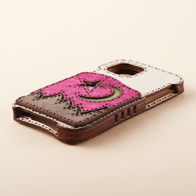 定番の月星デザインのiPhone11/11Pro/11ProMax用ケースです。ポケット部分は空に浮かぶ月星と山をデザインし、風景画のような幻想的な仕上がりに。星の部分がくり抜きになっており、ポケットにカードを入れると一味違った表情を楽しめます。iPhone本体をしっかりと覆うことが出来、側面にもレザーを使用することで保護性を高め、ウェーブ状のカットを施すことで持ちやすさも重視。*写真5枚目はカードを入れた際の参考画像です。※お使いの充電器によってはワイヤレス充電機能がお使いいただけない場合がございます。予めご了承下さい。