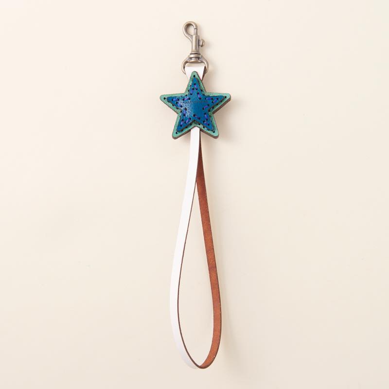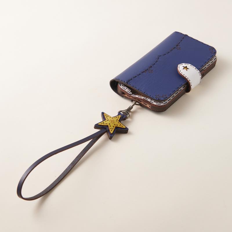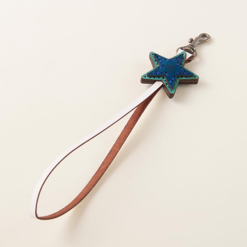 手を通して使うのにちょうどいいレザーハンドストラップです。ワンポイントの五芒星が可愛らしいく、手元にやさしくフィット。使い込む程にレザー特有の艶や質感をお楽しみいただけます。装着が簡単なナスカン仕様となっており、鍵、携帯電話、カメラ、クラッチバッグなど様々なアイテムにお使いいただけ、落下防止ツールとしても役立ちます。
