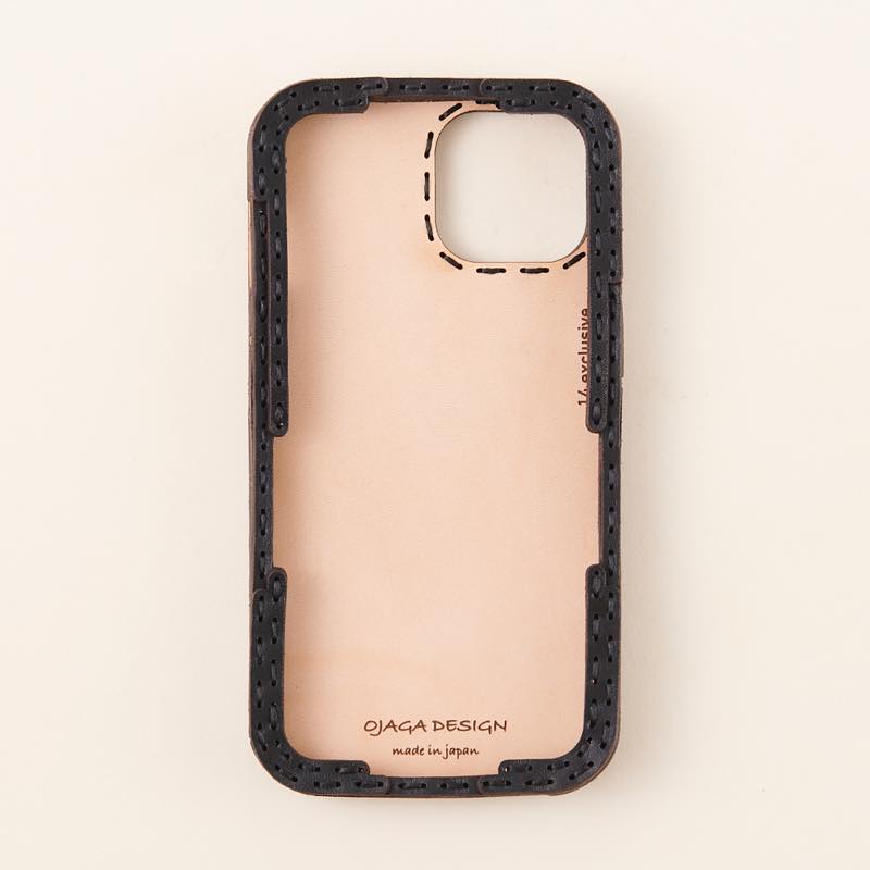 ケース側面をすべてレザーで覆った保護性の高いデザインで、サイドボタンはケースの上から操作可能です。