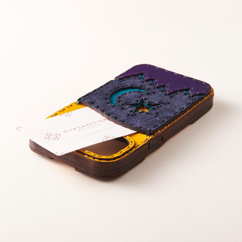 ポケット部分は空に浮かぶ月星と山をデザインし、風景画のような幻想的な仕上がりのロングセラーアテムです。