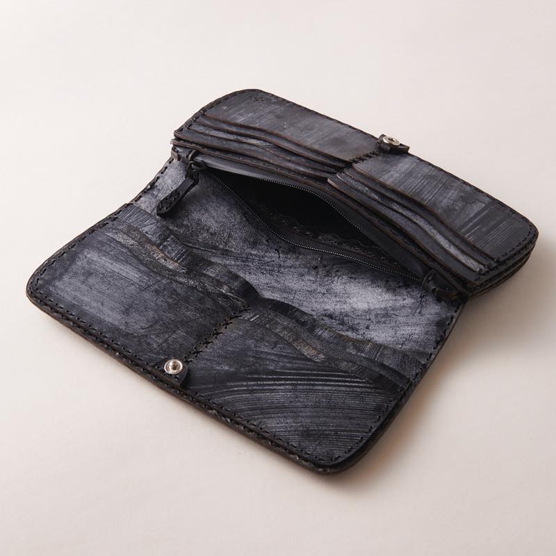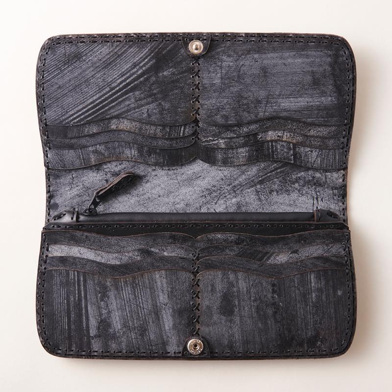 ジップタイプのコインポケットが付いたロングウォレットは、カードポケットにモスクをイメージしたカットを施しました。